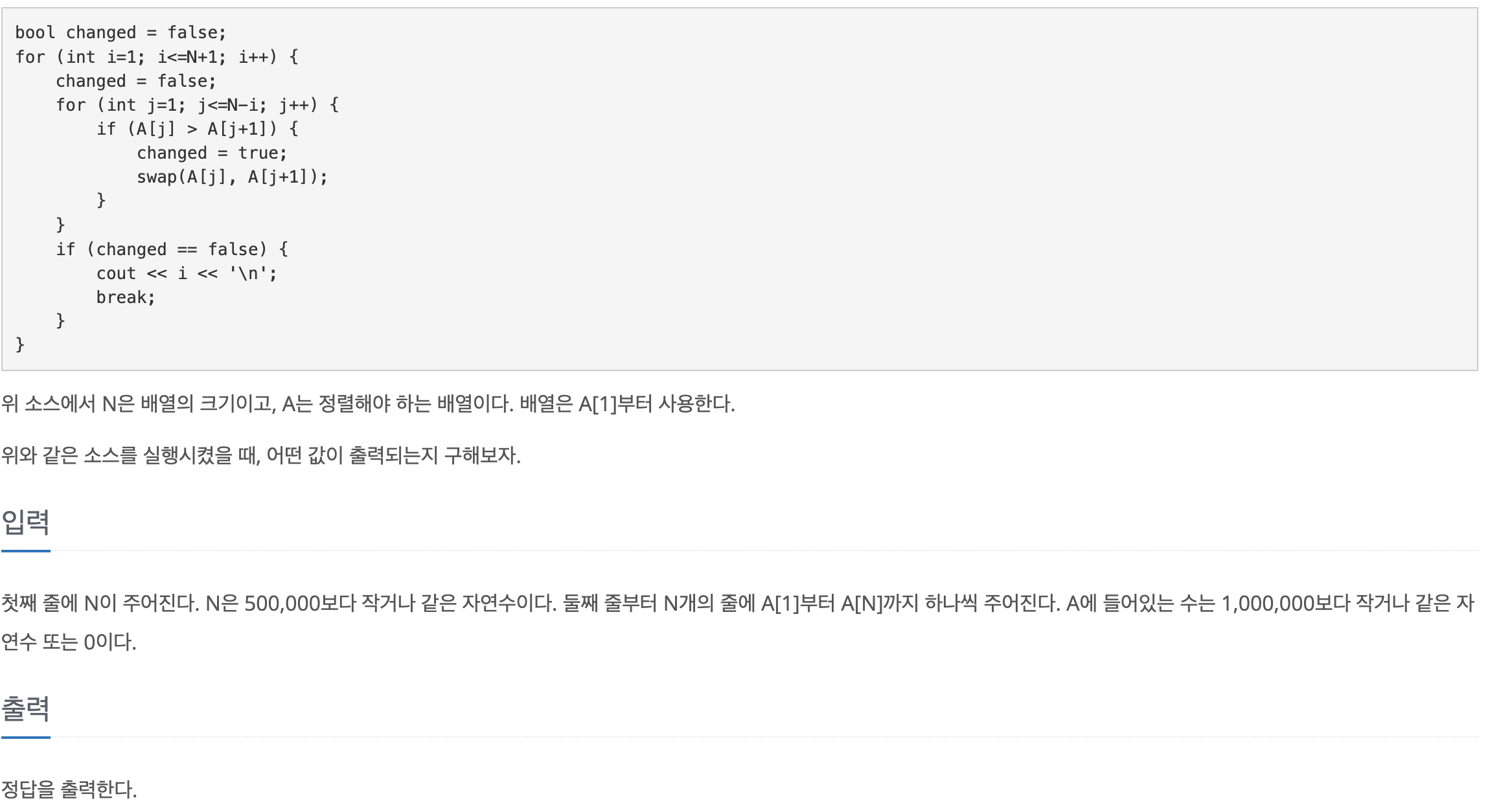 먼저 맨처음 풀이였던 버블 정렬을 이용해서 풀면 시간 초과가 났던 이유를 분석해보면