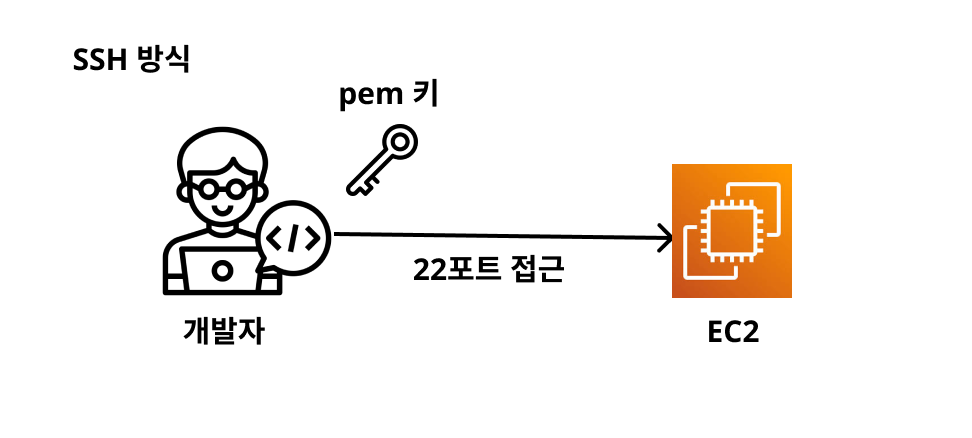 서버에 "외부에서 들어올 수 있는 접속 경로"가 상시 열려있어야 했습니다. - pem 키 관리 부담