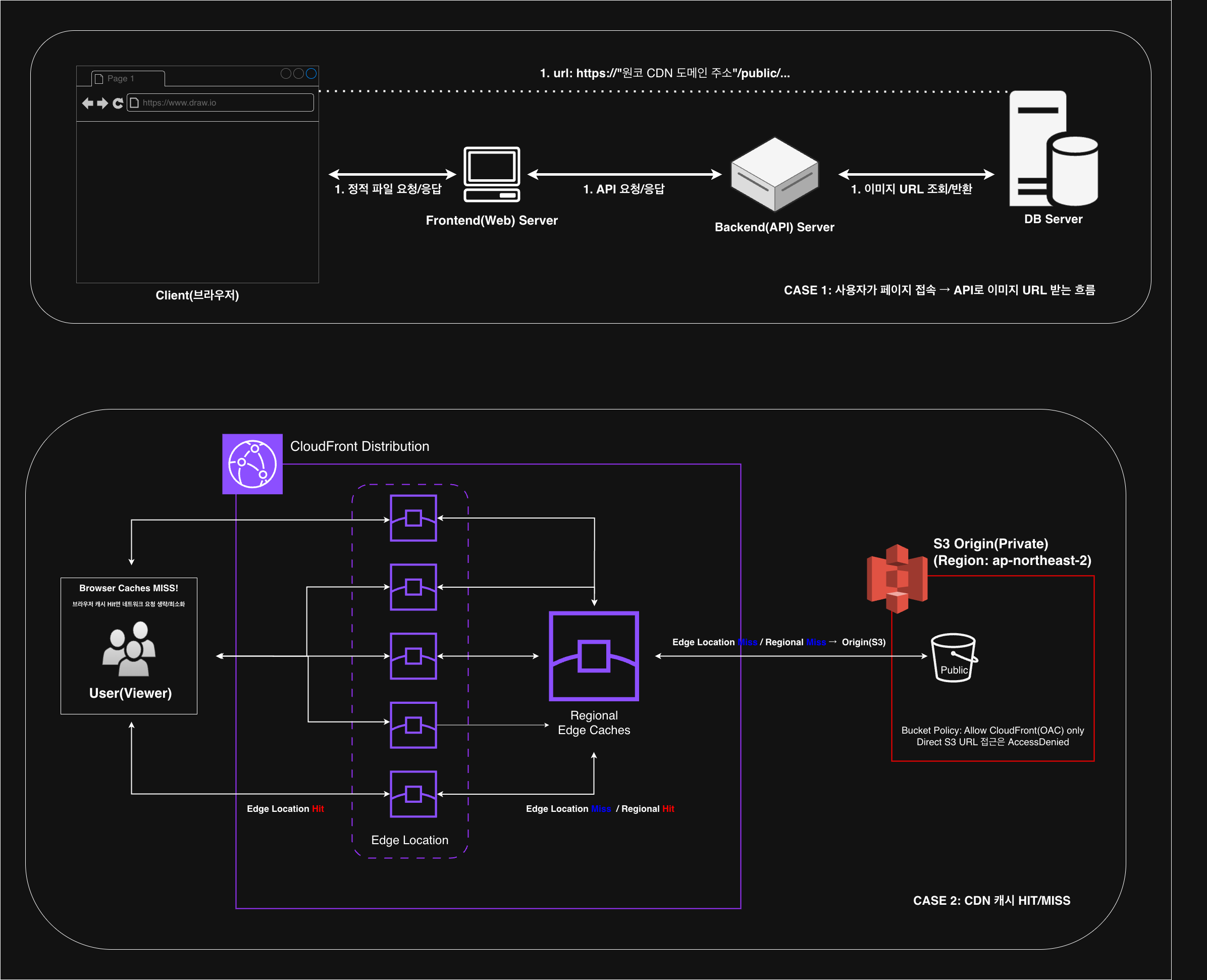 기존 방식(S3 객체 URL을 그대로 내려주는 구조)에서는 사용자가 이미지를 조회할 때마다, 매번 S3로 요청이 들어갑니다.